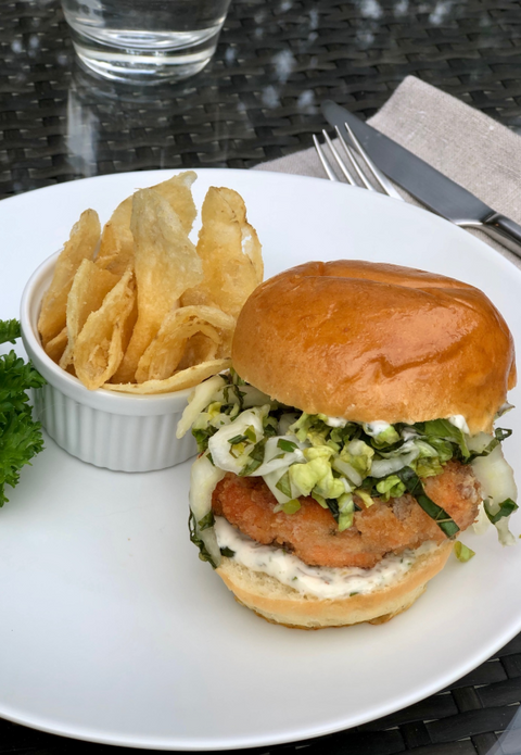 These ocean trout burgers are quite special. Served with both the remoulade and coleslaw on the bun makes for a pairing that is both unique and incredibly delicious.